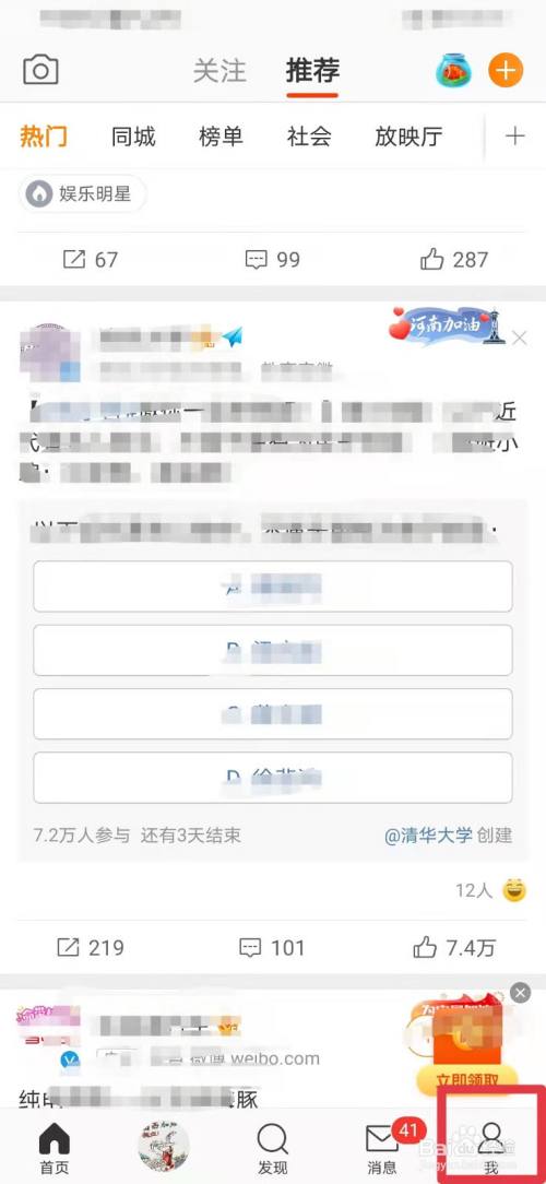 首先,点击微博首页下方的“我”。