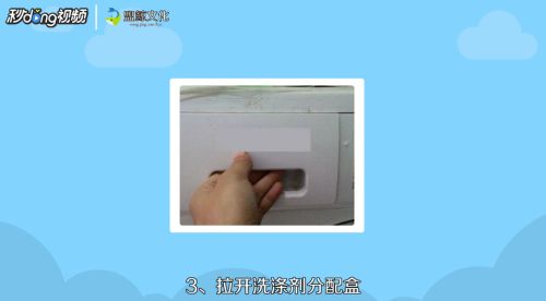 3拉开洗涤剂分配盒,放入洗衣粉或洗衣液。