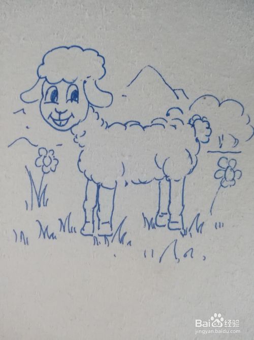 第三步画出小绵羊的脖子和整个身体的轮廓。