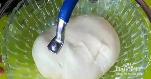 将面粉搅拌成面絮状以后,把面絮揉成面团,面团揉至光滑以后盖上盖子饧发20分钟。