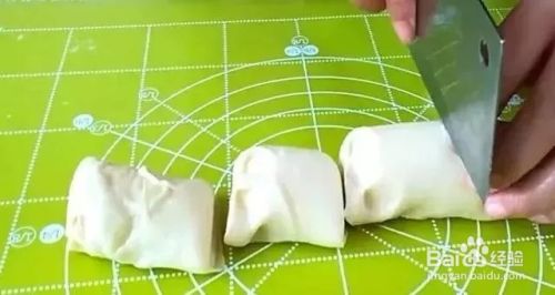 糖油酥涂抹均匀以后,把面片从一头卷起卷成长条行,然后切成大小均匀的小剂子。