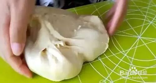 20分钟以后,将饧发好的面倒出,放在面板上揉一揉挤出里面的空气,揉成表面光滑的面团。