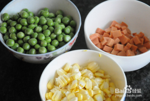 再加入玉米青豆胡火腿粒(可以换成胡萝卜粒,家里正好用完了),搅打均匀