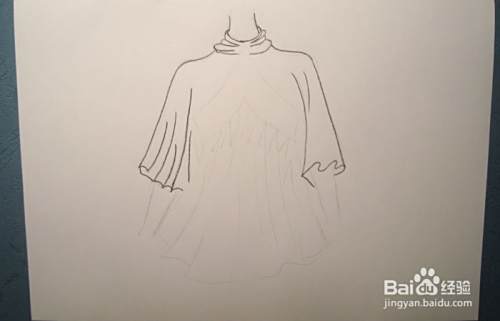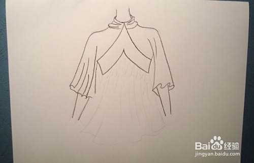 接着,用黑色的彩铅笔画出高领长袖女装的长袖的图形部分,并画出长袖上的花边图形,如下图所示。