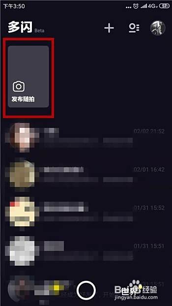 这个视频是在多闪里拍摄的,打开多闪后点击【随拍】。