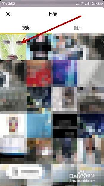 然后在手机相册里找到刚才的视频并点击上传即可。