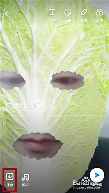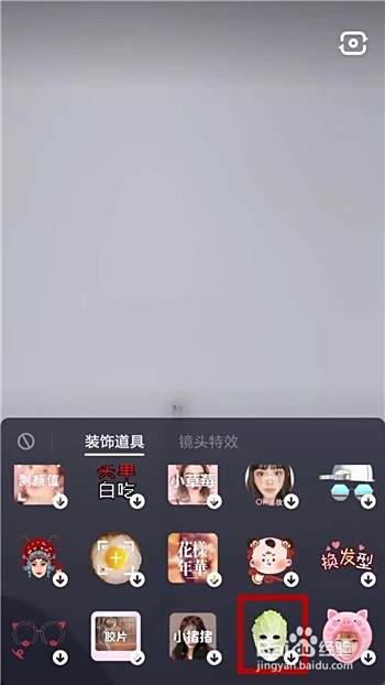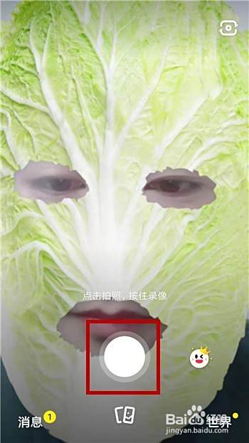 使用后可看到我们的脸部出现了大白菜,样子看起来非常像面膜,按住拍摄按钮录制视频。