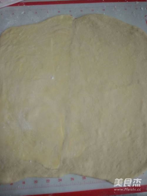 15不断重复12-14部得步骤。松弛后擀开,折叠,再松弛。重复几次就可以了。