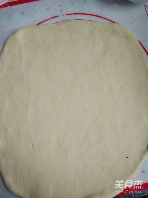 8松弛后的面团,用擀面杖擀成长方形。(全成使用干面粉,防粘连)