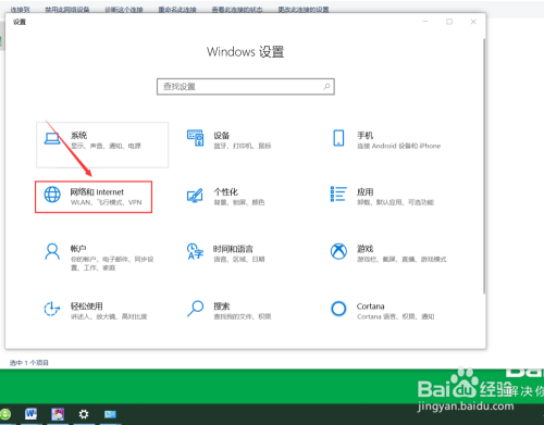 然后在新的界面里会有隐私、设备、手机等按钮,找到网络和Internet按钮,这一步尤为重要,不要点错了哦