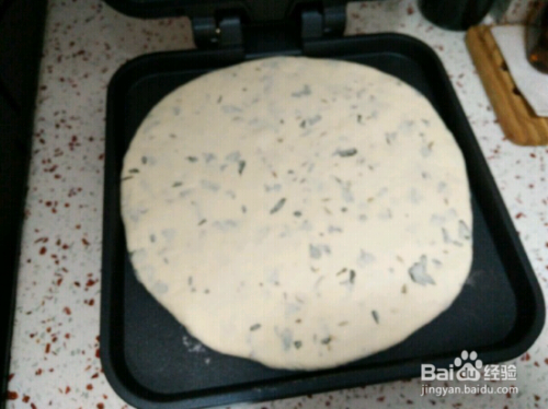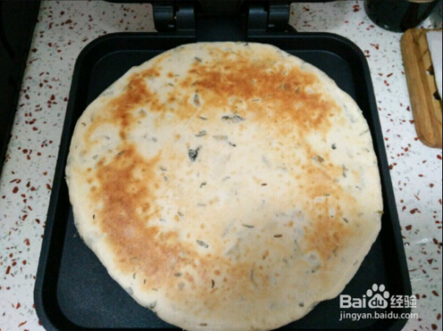 把电饼铛加热之后放入面饼,两面都烙到金黄就可以啦。