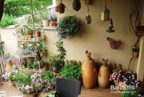 花盆的选择要考虑背景墙的颜色,装饰,还有地板地格调!当然不要忘了你那的气候是否适应植物,在阴凉的角落摆一些凤仙花、万年青、白掌之类的植物,而明亮处摆一些矮牵牛、六倍利之类的花儿。