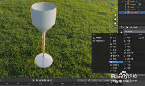 按快捷键G移动原有曲线的顶点,修改以平底酒杯截面的线条,如下图