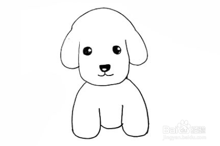 接着在两侧画上两只向下耷拉的耳朵。还有小狗圆圆的眼睛。
