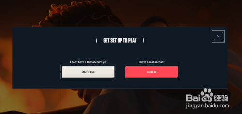 此时我们需要注册一个拳头账号(左侧选项),或者使用已有的拳头账号登录(右侧选项)。注册选项需要配合科学上网才能完成。