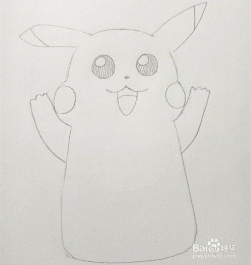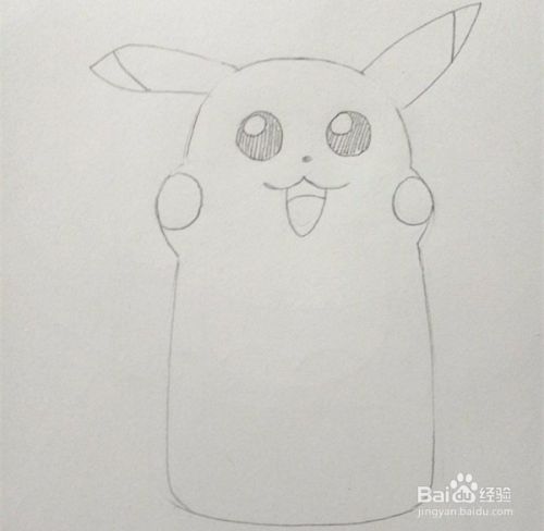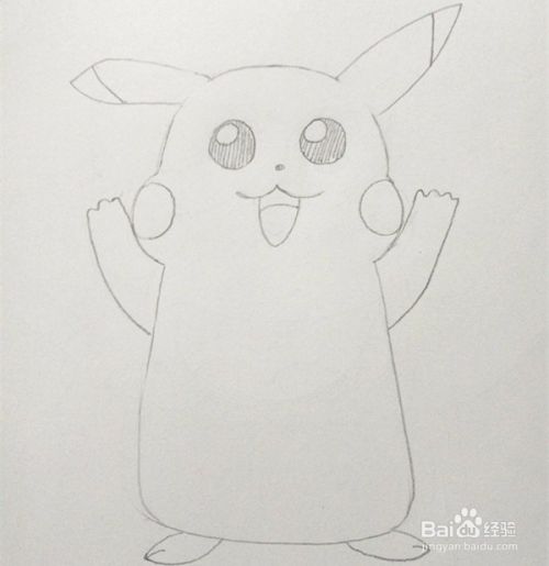 第三步,画出皮卡丘萌萌的五官和小表情~