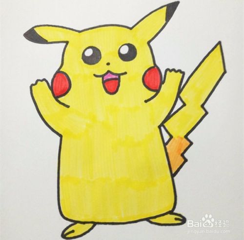 第七步,涂上喜欢的颜色,我们的皮卡丘就完成啦~