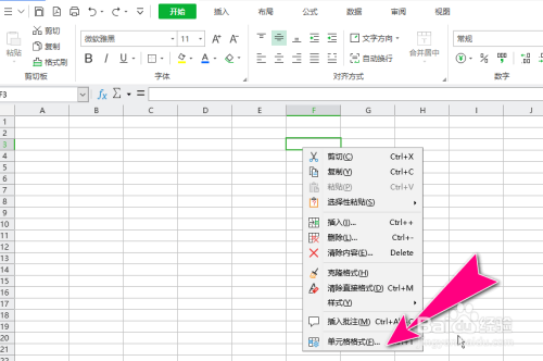 用"鼠标右键"选中一个单元格,点击"单元格格式"菜单。