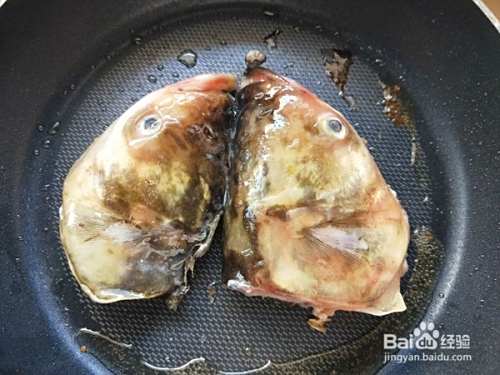鱼头放入平底锅中,下入适量的油煎到两面金黄。