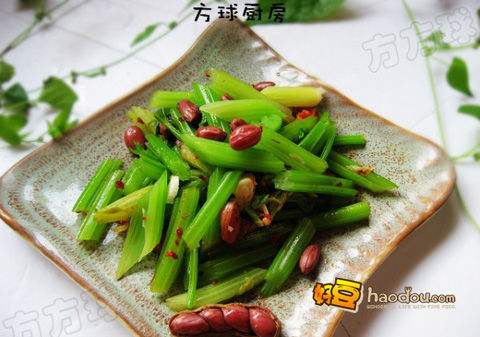 4将芹菜,花生米和蒜末倒在一起,里面加醋,盐,辣椒油拌匀即可。END