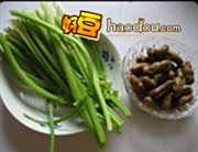 1芹菜一把,去叶,清洗干净。我这次用的是带壳的煮花生。在家也可以用花生仁做煮花生。方法是将花生仁用水浸泡一会,锅里放水,加入花生,盐,花椒,大料,烧开,然后用小火煮,直至花生颗粒饱满为止,关火,继续把花生浸在汤里入味,吃的时候再捞出来沥干水分。