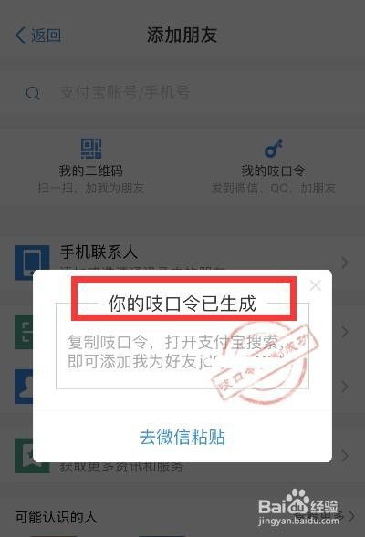 3、在“添加好友”中,点击【我的吱口令】即可生成吱口令