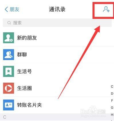 进入到”通讯录“后,在点击上面的【添加好友】图标,如图所示
