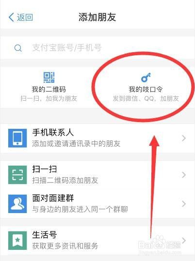 我们可以通过分享吱口令,让朋友加我好友。下面我们来看一下在我的支付宝中,吱口令在哪吧~