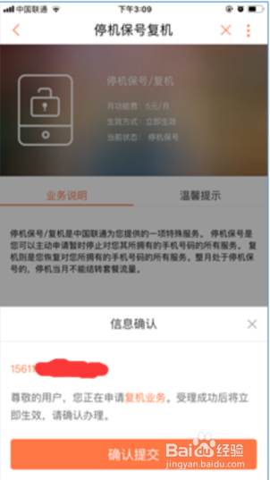 4、停机保号标准资费5元/月(特殊约定除外),停机及复机当月的费用可咨询10010客服热线。