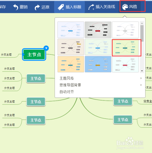 软件上方的风格按键中可以选择为导图添加格式风格样式