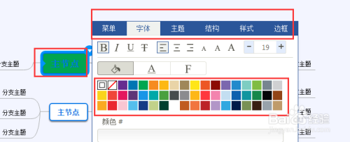 导图绘制好以后点击节点上的三角形按键选择修改字体大小,背景颜色等