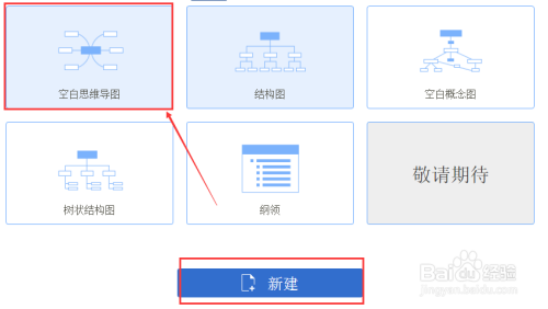 首先打开你电脑上的思维导图软件打开软件选择模板点击下方的新建按键