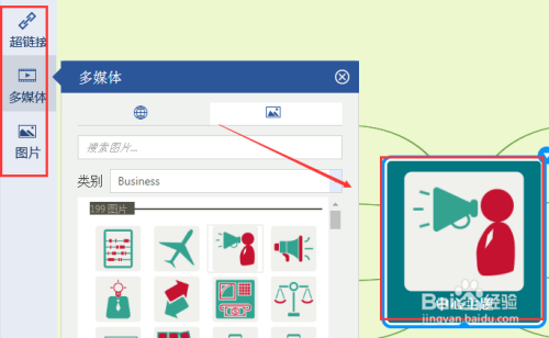左边的工具栏上可以选择为节点添加表情,图片,超链接等
