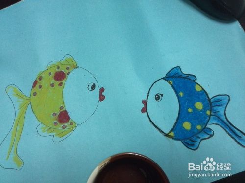 给自己的小鱼涂上自己喜欢的色(大的地方用油画棒小的地方用水彩笔)