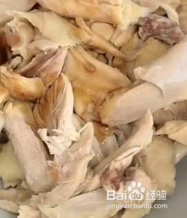 煮好捞出,放入凉水中,放凉,撕成小块放入盆中