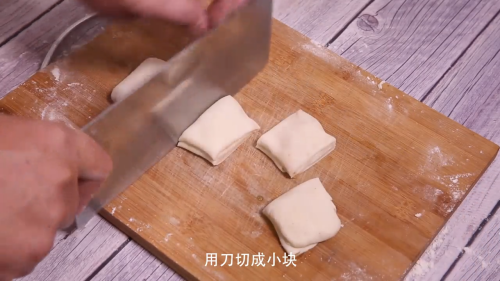 用手把面卷起来,用刀切成小块,拧成花卷。