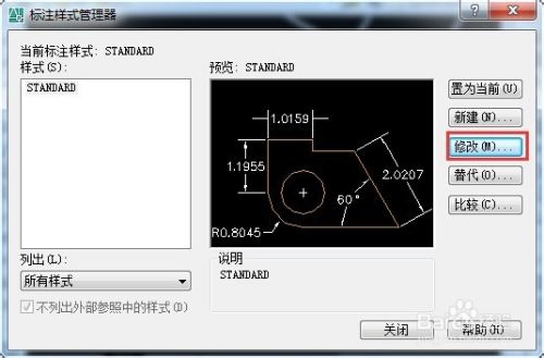 在标注样式管理器中,“新建”样式,或者“修改”样式。本文以修改为例,点击“修改”