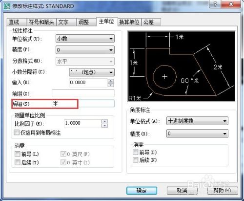 在修改标注样式对话框里,选择“主单位”栏