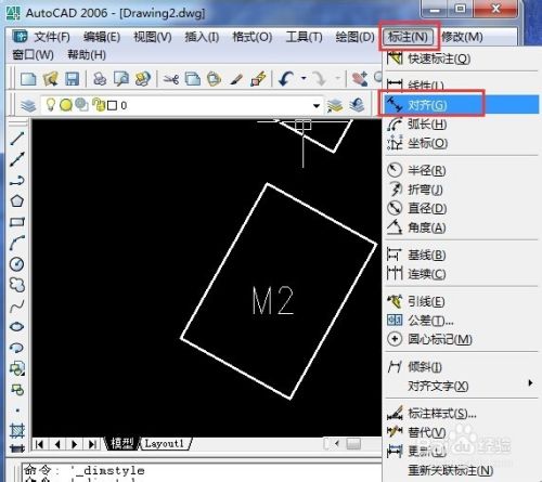 在cad菜单栏中点击“标注”--“对齐”