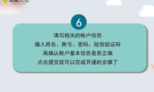 8填写相关的账户信息,输入姓名、账号、密码、短信验证码,确认账户基本信息是否正确,点击“提交”完成开通。