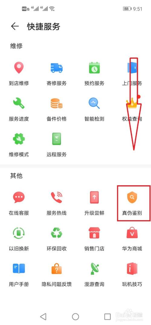打开服务,点击更多,点击真伪鉴别,点击网站查询或电话查询。