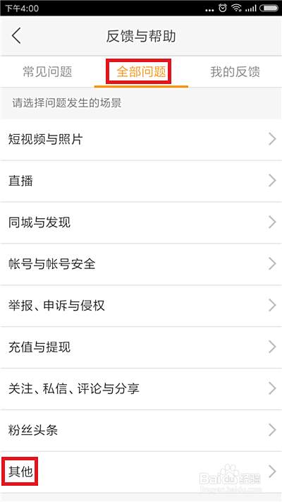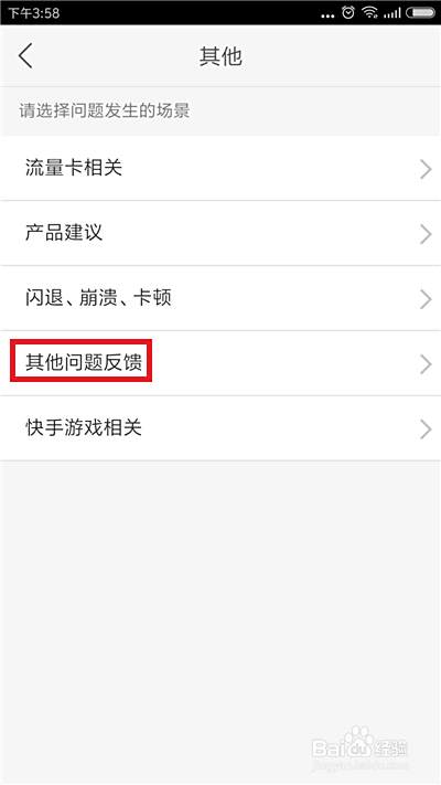 在这个界面中可以看到很多快手的相关问题,如果都没有我们的问题点击【其他】。