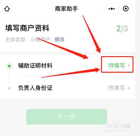 分别进入页面填写“证明材料”和“负责人身份证”上传。