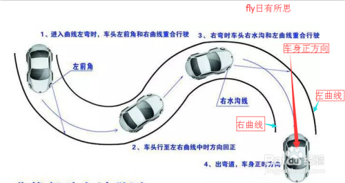 进入曲右弯时,车头的左前角和右曲线重合行驶。看下图。