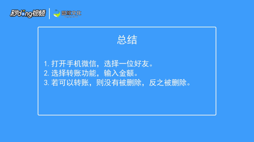 如果成功转账,则没有被删除,反之会出现自己不是收款方的好友,则说明已被删除。
