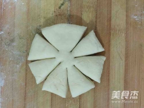 5用刀顺着印子在中间切开,稍微往外掰一下面皮形状就出来了