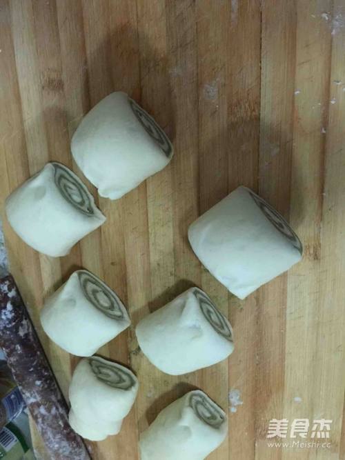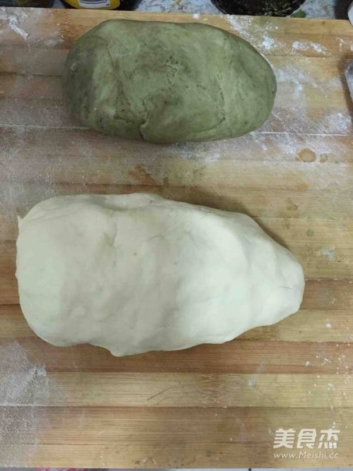 2将面团揉匀分成两部分一部分加入抹茶粉揉匀