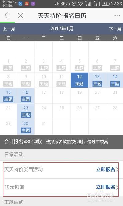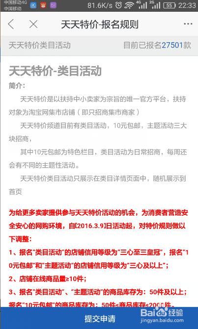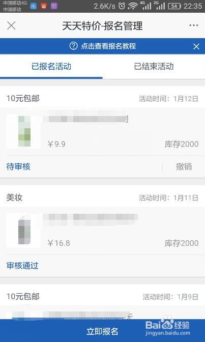 宝贝后可以看到报名情况。手机报名天天特价和电脑报名都在这里可以看到的。