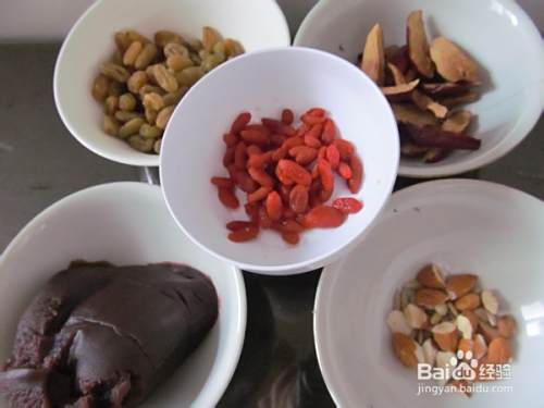 红枣,葡萄干,枸杞,浸泡30分钟。红枣切片。