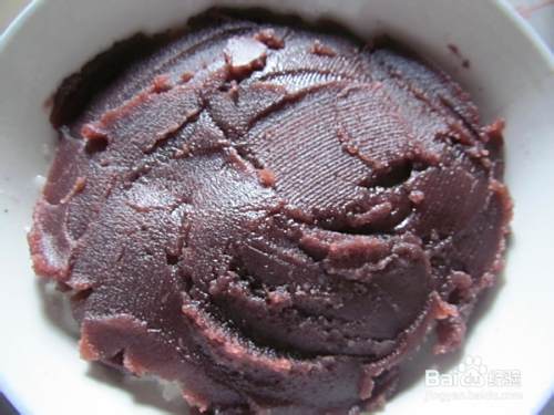 然后码入一层拌好的糯米饭,压实。再码入一层豆沙,压实。